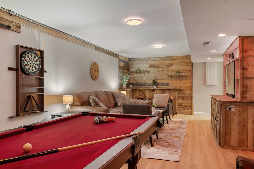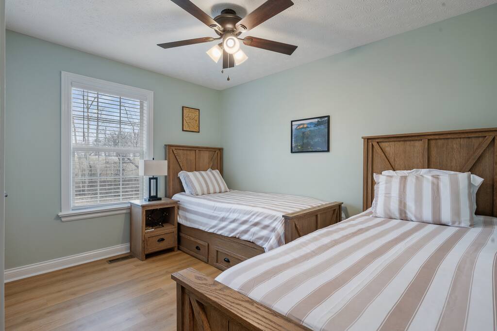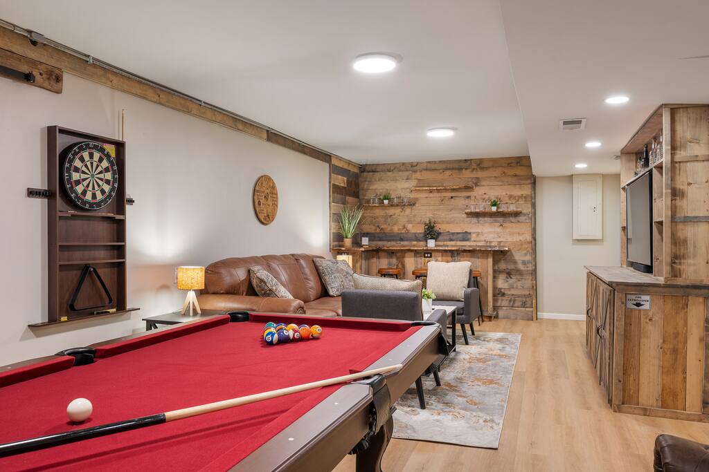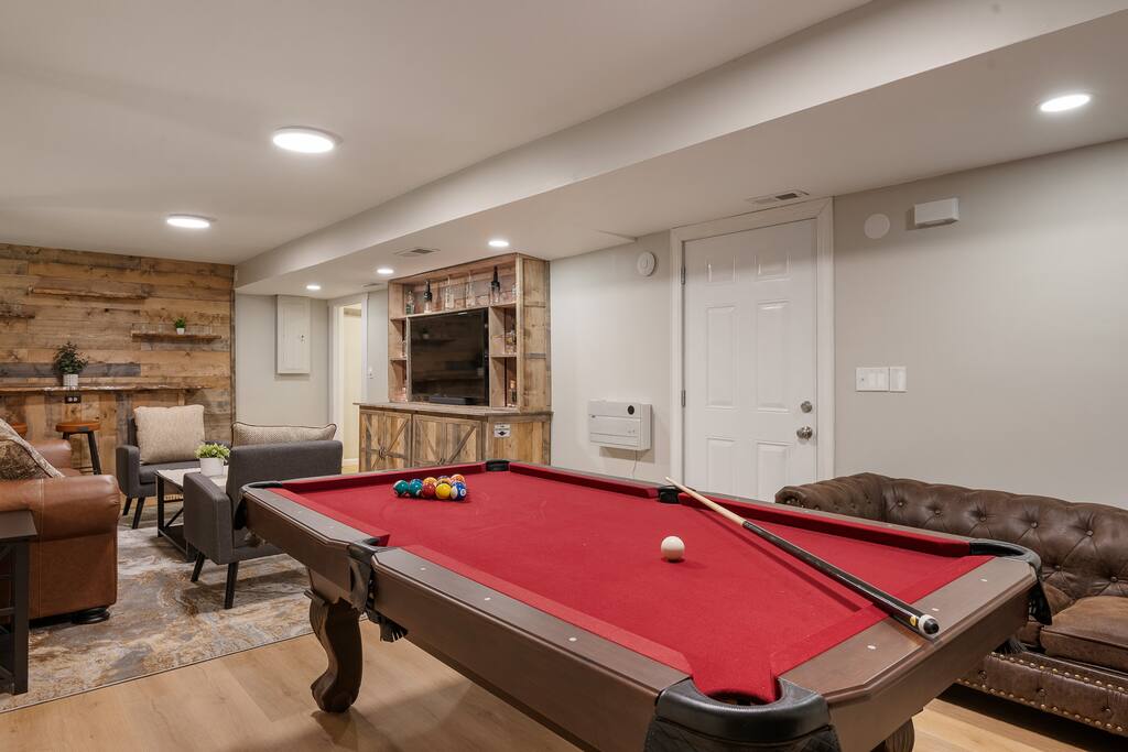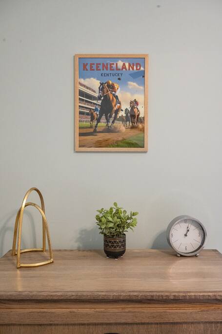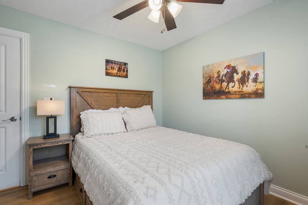 Escape to the charm of Bardstown, Kentucky at Angels Landing. Our home is the ideal location just minutes from world-renowned distilleries and historic sites. This spacious 4-bedroom, 2-bath home is the perfect place to relax and recharge after a day exploring the famous Bourbon Trail. Spacious Kitchen: • Fully stocked with all the essentials - coffee maker (including complimentary coffee, creamer to get you started), pots, pans, cast iron skillets, toaster, cookware, crockpot, mixing bowls, cutting boards, knives, measuring cups, etc. • Generous cabinet space for your groceries and beverages • Custom, locally built furniture - beautiful farmhouse table with seating for 8, matching kitchen island with bar for extra seating and cooking space • Glasses - tall, short, standard, wine & whiskey (including glen cairn) glasses • Plates, bowls, silverware (including steak knives) Bedrooms: • Soft, cozy comforters, sheets and serta pillows • Serta and Temper-pedic mattresses in all 1st floor bedrooms • Custom, locally built furniture - beds, bedside tables, dresser drawers • Throw blankets • Smart TV in Main bedroom • Ceiling fans • Full length mirror • Spacious Closets • Luggage valets Living Room: • Sofa sectional with fold out bed • Dimmable floor lamp • Custom, locally built furniture - coffee table and TV stand with electric fireplace • Bar with seating, looking into Kitchen • Ceiling fan • 55” Smart TV • Soundbar for TV and music from your phone (bluetooth) Bourbon Lounge • Large built-in bar - seats up to 4 people • Custom-built bourbon bottle display shelves with uplighting, surrounding a 55" Smart TV • Soundbar for TV and music from your phone (bluetooth) • Large leather sofa surrounded by cozy accent chairs • Pool table and dartboard • Overhead lighting that can transition from warm ambience, to immersive, moving color scenes. By request, custom lighting scenes can be created and easily turned on for special occasions. For example, turn on team colors while you are watching the big game, colors for your birthday get together, or wedding colors for the soon to be bride or groom. • Soundbar for TV and music from your phone (bluetooth) Bathrooms: • Two full size bathrooms with bath or standup showers and luxurious shower heads • Plenty of cozy bath towels, hand towels and washcloths • Hair dryers • Granite countertops with large sinks Backyard: • Spacious, new wooden deck • Note: Our outdoor space is in progress and will be completed in the spring Each of our four bedrooms have a unique theme, showcasing our favorite places and events that we love sharing with our guests: The Utah room - We were born and raised in Kentucky, but now live in the beautiful state of Utah. This is our second home, where we visit our children and grandchildren as often as we can. We’ve nicknamed our place “Angels Landing”, inspired by both Utah and whiskey! Angels Landing is one the most spectacular (and scary!) hikes in North America, located in Zion National Park, Utah. The nickname also has ties to “The Angel's Share”, which is the whiskey lost to evaporation during the aging process. Medieval Irish and Scotts believed the whiskey that disappeared into the air was meant as an offering for the angels. "The Red" room - A tribute to the Red River Gorge, located two hours east of Bardstown. This is Kentucky's best kept secret, a beautiful area with gorgeous landscapes and hundreds of rock arches. In fact, Kentucky has the second most rock arches in the United States, second to Utah. The Equestrian room - What is Kentucky without horses, The Derby and Keeneland? This room showcases these elegant, regal animals, which bring us so much joy and excitement every year during horse racing season. The Angels Room - A heavenly hideaway, perfect for rest and relaxation. Enjoy your favorite book at the cozy library nook, take a nap, or even experience an immersive lighting experience, where you can look up into the sky, surrounded by celestial clouds and stars. The Angels Room is inspired by the “Angel’s Share”, which is the whiskey lost to evaporation during the aging process. The whiskey that evaporates into the air and perfumes the storehouse was once dubbed the angel's share in medieval Ireland and Scotland. They believed the whiskey that disappeared into the air was meant as an offering for the angels. Whether you're a bourbon connoisseur, history enthusiast, or simply looking to enjoy the stunning Kentucky countryside, this home offers a perfect base for your adventures. Book your stay today and experience the best of Bardstown and Bourbon Country!