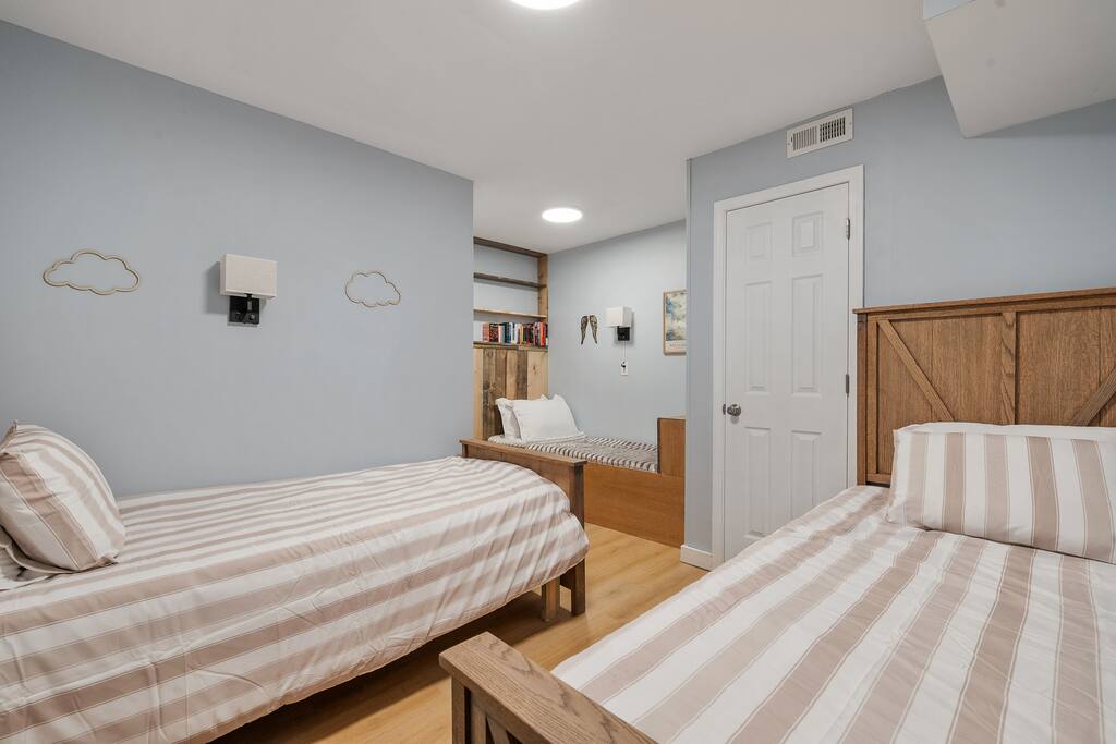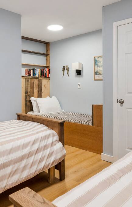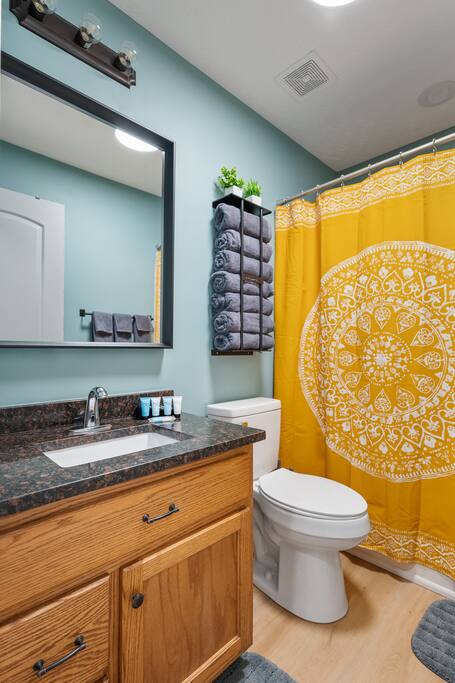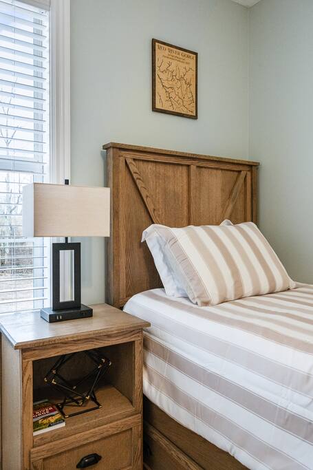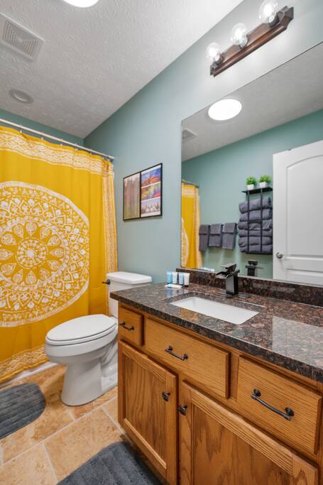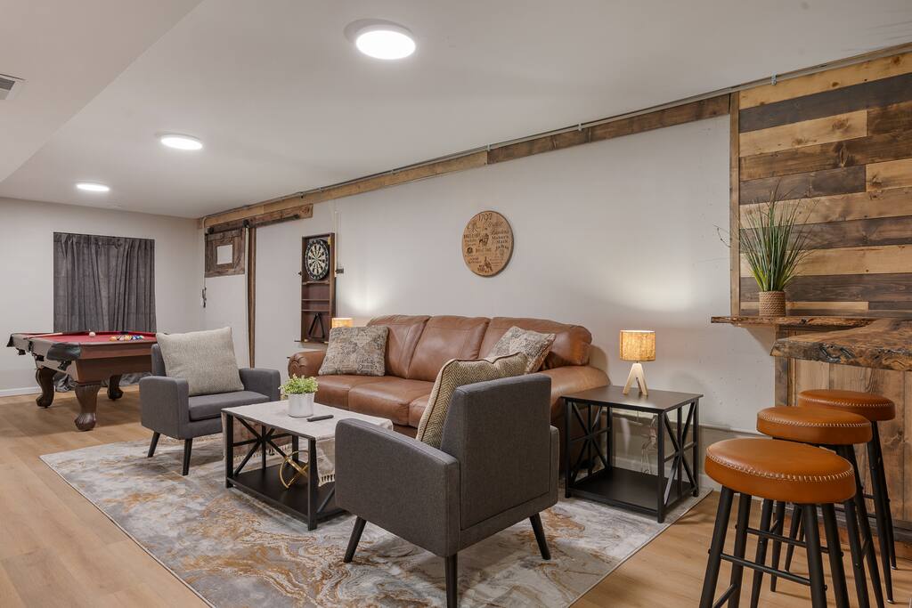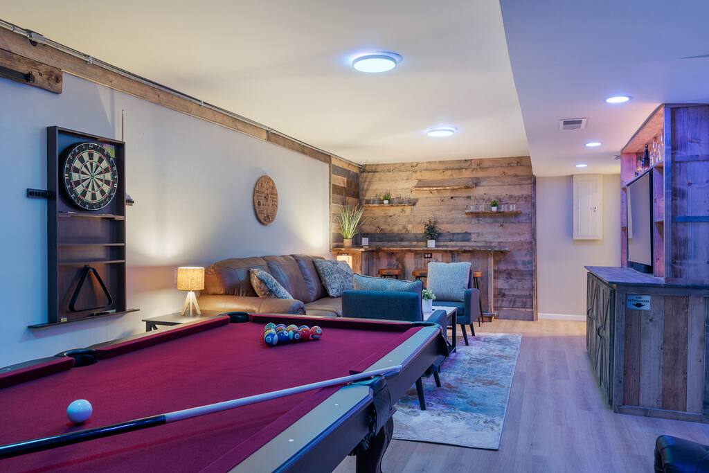 Escape to the charm of Bardstown, Kentucky at Angels Landing. Our home is the ideal location just minutes from world-renowned distilleries and historic sites. This spacious 4-bedroom, 2-bath home is the perfect place to relax and recharge after a day exploring the famous Bourbon Trail. Spacious Kitchen: • Fully stocked with all the essentials - coffee maker (including complimentary coffee, creamer to get you started), pots, pans, cast iron skillets, toaster, cookware, crockpot, mixing bowls, cutting boards, knives, measuring cups, etc. • Generous cabinet space for your groceries and beverages • Custom, locally built furniture - beautiful farmhouse table with seating for 8, matching kitchen island with bar for extra seating and cooking space • Glasses - tall, short, standard, wine & whiskey (including glen cairn) glasses • Plates, bowls, silverware (including steak knives) Bedrooms: • Soft, cozy comforters, sheets and serta pillows • Serta and Temper-pedic mattresses in all 1st floor bedrooms • Custom, locally built furniture - beds, bedside tables, dresser drawers • Throw blankets • Smart TV in Main bedroom • Ceiling fans • Full length mirror • Spacious Closets • Luggage valets Living Room: • Sofa sectional with fold out bed • Dimmable floor lamp • Custom, locally built furniture - coffee table and TV stand with electric fireplace • Bar with seating, looking into Kitchen • Ceiling fan • 55” Smart TV • Soundbar for TV and music from your phone (bluetooth) Bourbon Lounge • Large built-in bar - seats up to 4 people • Custom-built bourbon bottle display shelves with uplighting, surrounding a 55" Smart TV • Soundbar for TV and music from your phone (bluetooth) • Large leather sofa surrounded by cozy accent chairs • Pool table and dartboard • Overhead lighting that can transition from warm ambience, to immersive, moving color scenes. By request, custom lighting scenes can be created and easily turned on for special occasions. For example, turn on team colors while you are watching the big game, colors for your birthday get together, or wedding colors for the soon to be bride or groom. • Soundbar for TV and music from your phone (bluetooth) Bathrooms: • Two full size bathrooms with bath or standup showers and luxurious shower heads • Plenty of cozy bath towels, hand towels and washcloths • Hair dryers • Granite countertops with large sinks Backyard: • Spacious, new wooden deck • Note: Our outdoor space is in progress and will be completed in the spring Each of our four bedrooms have a unique theme, showcasing our favorite places and events that we love sharing with our guests: The Utah room - We were born and raised in Kentucky, but now live in the beautiful state of Utah. This is our second home, where we visit our children and grandchildren as often as we can. We’ve nicknamed our place “Angels Landing”, inspired by both Utah and whiskey! Angels Landing is one the most spectacular (and scary!) hikes in North America, located in Zion National Park, Utah. The nickname also has ties to “The Angel's Share”, which is the whiskey lost to evaporation during the aging process. Medieval Irish and Scotts believed the whiskey that disappeared into the air was meant as an offering for the angels. "The Red" room - A tribute to the Red River Gorge, located two hours east of Bardstown. This is Kentucky's best kept secret, a beautiful area with gorgeous landscapes and hundreds of rock arches. In fact, Kentucky has the second most rock arches in the United States, second to Utah. The Equestrian room - What is Kentucky without horses, The Derby and Keeneland? This room showcases these elegant, regal animals, which bring us so much joy and excitement every year during horse racing season. The Angels Room - A heavenly hideaway, perfect for rest and relaxation. Enjoy your favorite book at the cozy library nook, take a nap, or even experience an immersive lighting experience, where you can look up into the sky, surrounded by celestial clouds and stars. The Angels Room is inspired by the “Angel’s Share”, which is the whiskey lost to evaporation during the aging process. The whiskey that evaporates into the air and perfumes the storehouse was once dubbed the angel's share in medieval Ireland and Scotland. They believed the whiskey that disappeared into the air was meant as an offering for the angels. Whether you're a bourbon connoisseur, history enthusiast, or simply looking to enjoy the stunning Kentucky countryside, this home offers a perfect base for your adventures. Book your stay today and experience the best of Bardstown and Bourbon Country!
